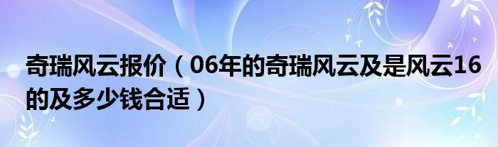 奇瑞风云报价(06年的奇瑞风云及是风云16的及多少钱合适)