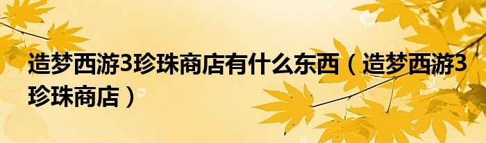 造梦西游3珍珠商店有什么东西(造梦西游3珍珠商店)