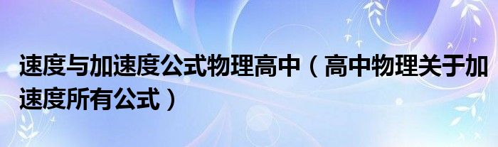 关于速度与加速度公式物理高中,高中物理关于加速度所有公式这个很多人还不知道,今天菲菲来为大家解答以上的问题,现在让我们一起来看看吧!