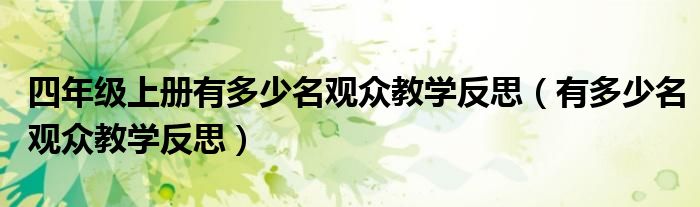 关于四年级上册有多少名观众教学反思,有多少名观众教学反思这个很多人还不知道,今天菲菲来为大家解答以上的问题,现在让我们一起来看看吧!