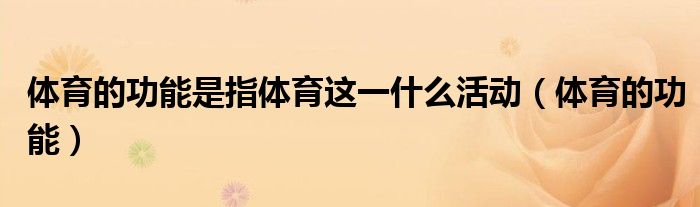 关于体育的功能是指体育这一什么活动,体育的功能这个很多人还不知道,今天菲菲来为大家解答以上的问题,现在让我们一起来看看吧!