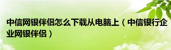 中信网银伴侣怎么下载从电脑上(中信银行企业网银伴侣)