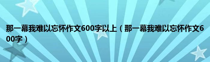 关于那一幕我难以忘怀作文600字以上,那一幕我难以忘怀作文600字这个很多人还不知道,今天菲菲来为大家解答以上的问题,现在让我们一起来看看吧!