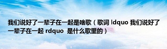 关于我们说好了一辈子在一起是啥歌,歌词 ldquo 我们说好了一辈子在一起 rdquo 是什么歌里的这个很多人还不知道,今天菲菲来为大家解答以上的问题,现在让我们一起来看看吧!