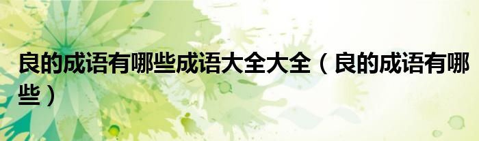 大家好,小晋来为大家解答以下问题,关于良的成语有哪些成语大全大全,良的成语有哪些很多人还不知道,今天让我们一起来看看吧!
