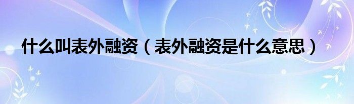 关于什么叫表外融资,表外融资是什么意思这个很多人还不知道,今天菲菲来为大家解答以上的问题,现在让我们一起来看看吧!