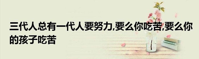 关于三代人总有一代人要努力,要么你吃苦,要么你的孩子吃苦这个很多人还不知道,今天菲菲来为大家解答以上的问题,现在让我们一起来看看吧!