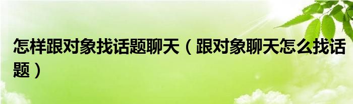 怎样跟对象找话题聊天(跟对象聊天怎么找话题)
