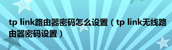 tp link路由器密码怎么设置(tp link无线路由器密码设置)
