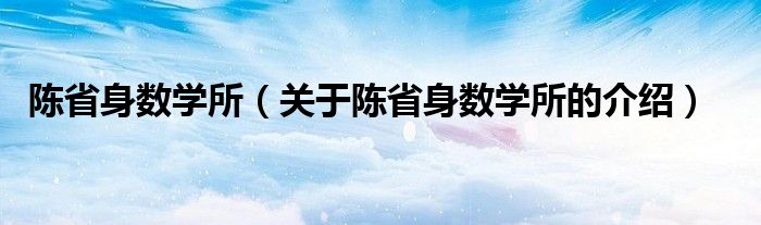 1、陈省身数学研究所是国际数学大师陈省身继原“中央研究院”数学研究所、美国国家数学科学研究所(MSRI)之后一生创建的第三个数学研究机构,陈省身认为中国数学要在国际上取得应有的地位,成为数学强国。