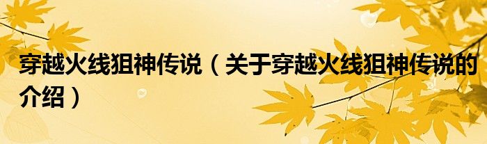 大家好,小都来为大家解答以上的问题。穿越火线狙神传说,关于穿越火线狙神传说的介绍很多人还不知道,现在让我们一起来看看吧!