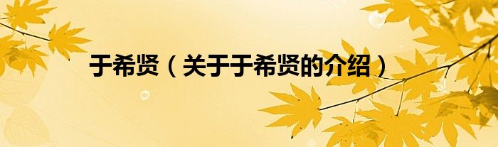 大家好,小都来为大家解答以上的问题。于希贤,关于于希贤的介绍很多人还不知道,现在让我们一起来看看吧!