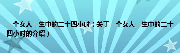 大家好,小都来为大家解答以上的问题。一个女人一生中的二十四小时,关于一个女人一生中的二十四小时的介绍很多人还不知道,现在让我们一起来看看吧!