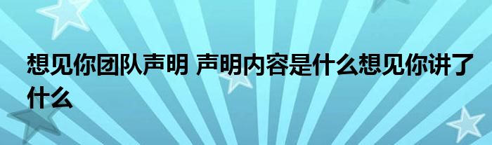 大家好.我是互联百科的羽儿,现在为大家解决以上想见你团队声明 声明内容是什么想见你讲了什么的问题.