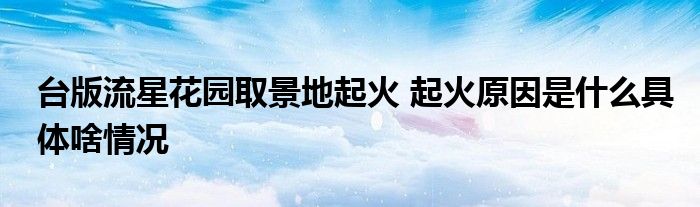 大家好.我是互联百科的羽儿,现在为大家解决以上台版流星花园取景地起火 起火原因是什么具体啥情况的问题.