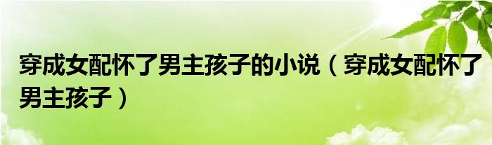 大家好,小晋来为大家解答以下问题,关于穿成女配怀了男主孩子的小说,穿成女配怀了男主孩子很多人还不知道,今天让我们一起来看看吧!