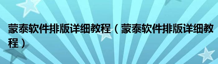 蒙泰软件排版详细教程(蒙泰软件排版详细教程)
