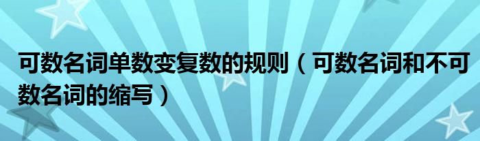 关于可数名词单数变复数的规则,可数名词和不可数名词的缩写这个很多人还不知道,今天菲菲来为大家解答以上的问题,现在让我们一起来看看吧!