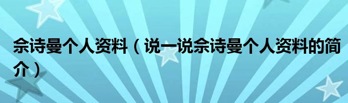 夏弥来为大家解答以下的问题,佘诗曼个人资料,说一说佘诗曼个人资料的简介,现在让我们一起来看看吧!