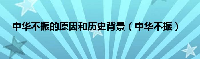 关于中华不振的原因和历史背景,中华不振这个很多人还不知道,今天菲菲来为大家解答以上的问题,现在让我们一起来看看吧!