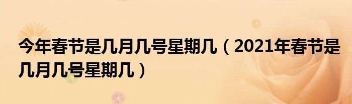 大家好,乐儿来为大家解答以下问题,今年春节是几月几号星期几,2021年春节是几月几号星期几很多人还不知道,现在让我们一起来看看吧!