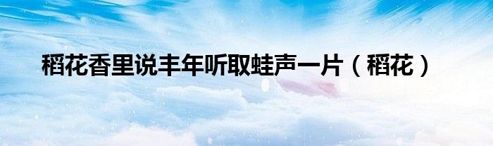 大家好,我是小科,我来为大家解答以上问题。稻花香里说丰年听取蛙声一片,稻花很多人还不知道,现在让我们一起来看看吧!