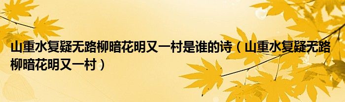 山重水复疑无路柳暗花明又一村是谁的诗(山重水复疑无路柳暗花明又一村)