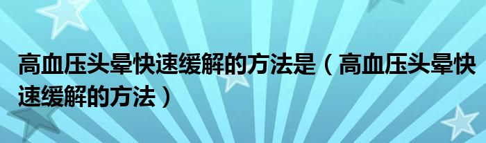 高血压头晕快速缓解的方法是(高血压头晕快速缓解的方法)