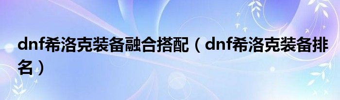 dnf希洛克装备融合搭配(dnf希洛克装备排名)