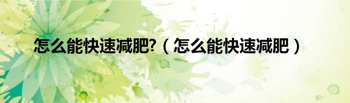 大家好,乐天来为大家解答以下的问题,怎么能快速减肥?,怎么能快速减肥很多人还不知道,现在让我们一起来看看吧!