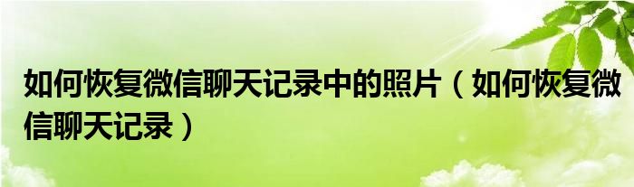 如何恢复微信聊天记录中的照片(如何恢复微信聊天记录)
