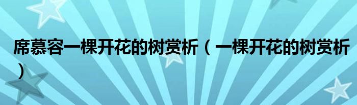 大家好,小晋来为大家解答以下问题,关于席慕容一棵开花的树赏析,一棵开花的树赏析很多人还不知道,今天让我们一起来看看吧!