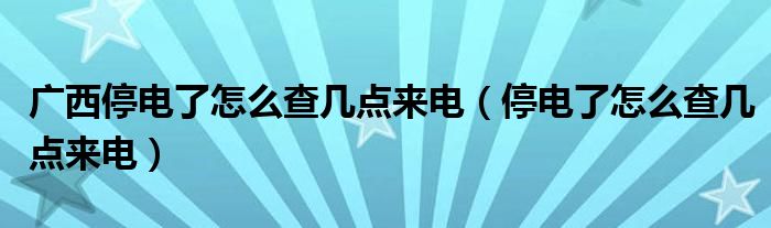 大家好,小晋来为大家解答以下问题,关于广西停电了怎么查几点来电,停电了怎么查几点来电很多人还不知道,今天让我们一起来看看吧!