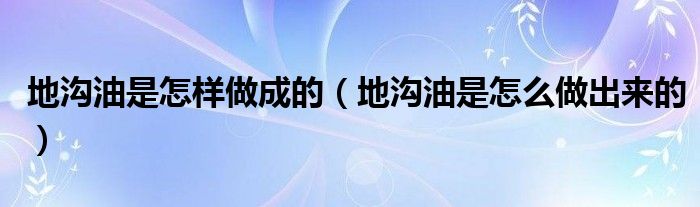关于地沟油是怎样做成的,地沟油是怎么做出来的这个很多人还不知道,今天菲菲来为大家解答以上的问题,现在让我们一起来看看吧!