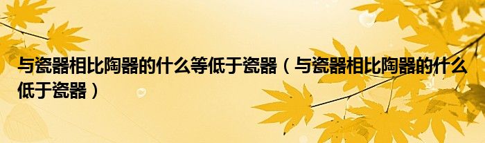 关于与瓷器相比陶器的什么等低于瓷器,与瓷器相比陶器的什么低于瓷器这个很多人还不知道,今天菲菲来为大家解答以上的问题,现在让我们一起来看看吧!