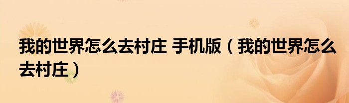 我的世界怎么去村庄?方法一:走一走看运气。