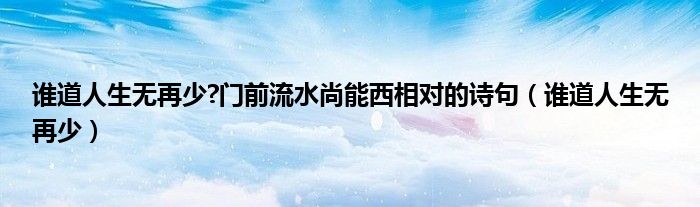关于谁道人生无再少?门前流水尚能西相对的诗句,谁道人生无再少这个很多人还不知道,今天菲菲来为大家解答以上的问题,现在让我们一起来看看吧!