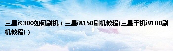 三星i9300如何刷机(三星i8150刷机教程(三星手机i9100刷机教程))