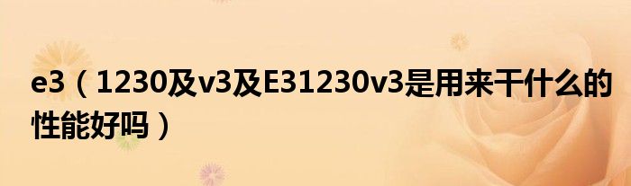 大家好,小常来为大家解答以上问题。e3,1230及v3及E31230v3是用来干什么的性能好吗很多人还不知道,现在让我们一起来看看吧!