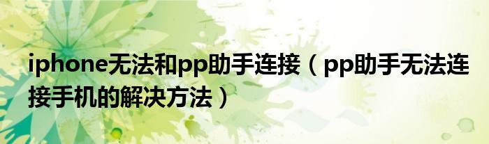 大家好,今天小悦来为大家解答以上问题。iphone无法和pp助手连接,pp助手无法连接手机的解决方法很多人还不知道,现在让我们一起来看看吧!