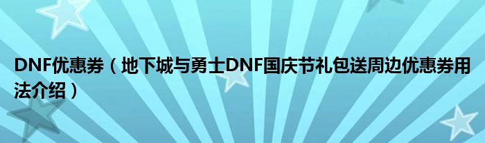 DNF优惠券(地下城与勇士DNF国庆节礼包送周边优惠券用法介绍)