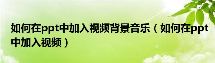 如何在ppt中加入视频背景音乐(如何在ppt中加入视频)