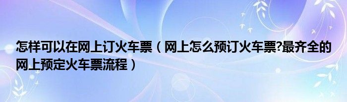 大家好,今天小悦来为大家解答以上问题。怎样可以在网上订火车票,网上怎么预订火车票?最齐全的网上预定火车票流程很多人还不知道,现在让我们一起来看看吧!