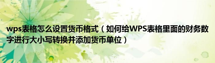 wps表格怎么设置货币格式(如何给WPS表格里面的财务数字进行大小写转换并添加货币单位)