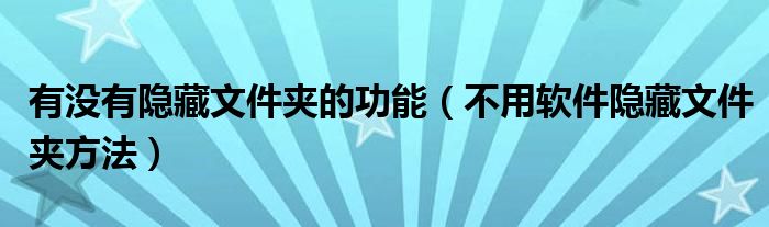 最佳答案大家好,今天小悦来为大家解答以上问题。有没有隐藏文件夹的功能,不用软件隐藏文件夹方法很多人还不知道,现在让我们一起来看看吧!在此有两个非常酷的小办法,介绍给各位知道下,希望可以对你有用。方法如下:这个方法并不是真的用来隐藏文件夹——真想要把东西藏起来,当然还是用专业的工具来实现...