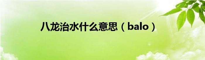 八龙治水什么意思,balo这个很多人还不知道,小飞来为大家解答以上的问题。现在让我们一起来看看吧!