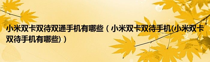 大家好,小常来为大家解答以上问题。小米双卡双待双通手机有哪些,小米双卡双待手机(小米双卡双待手机有哪些)很多人还不知道,现在让我们一起来看看吧!