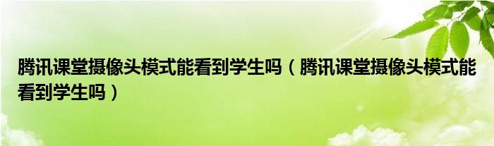 大家好,跳跳为你解答以上问题。腾讯课堂摄像头模式能看到学生吗,腾讯课堂摄像头模式能看到学生吗这个问题很多人还不知道,现在让我们一起来看看吧!