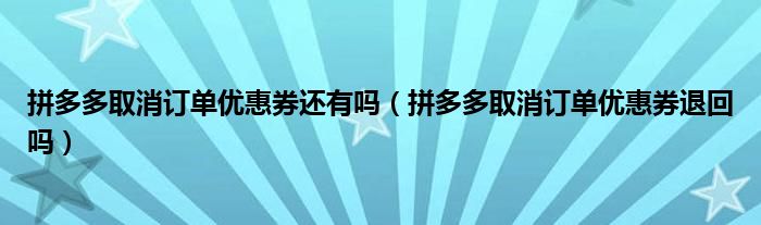 大家好,跳跳为你解答以上问题。拼多多取消订单优惠券还有吗,拼多多取消订单优惠券退回吗这个问题很多人还不知道,现在让我们一起来看看吧!
