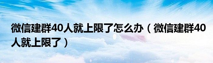 大家好,小晋来为大家解答以下问题,关于微信建群40人就上限了怎么办,微信建群40人就上限了很多人还不知道,今天让我们一起来看看吧!